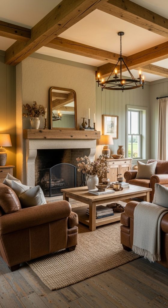 5. Rustic Sage and Brown Living Room
