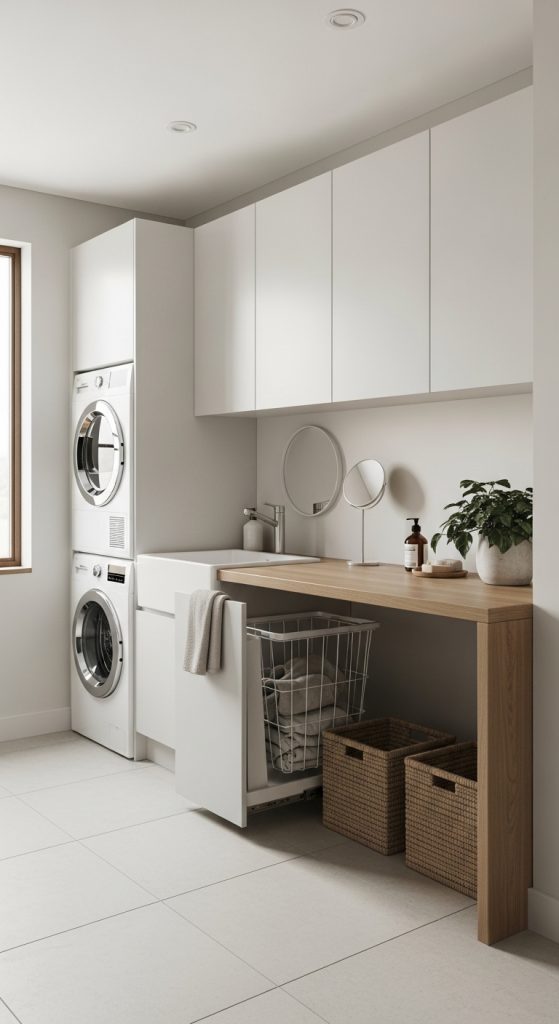A well-designed laundry room is not just about washing clothes—it’s about workflow efficiency. Everything should be placed in a way that reduces unnecessary movement. From washing machines to folding counters and storage cabinets, each element should serve a clear purpose. Lighting and color also play a huge role in making narrow spaces feel more open and less restrictive.