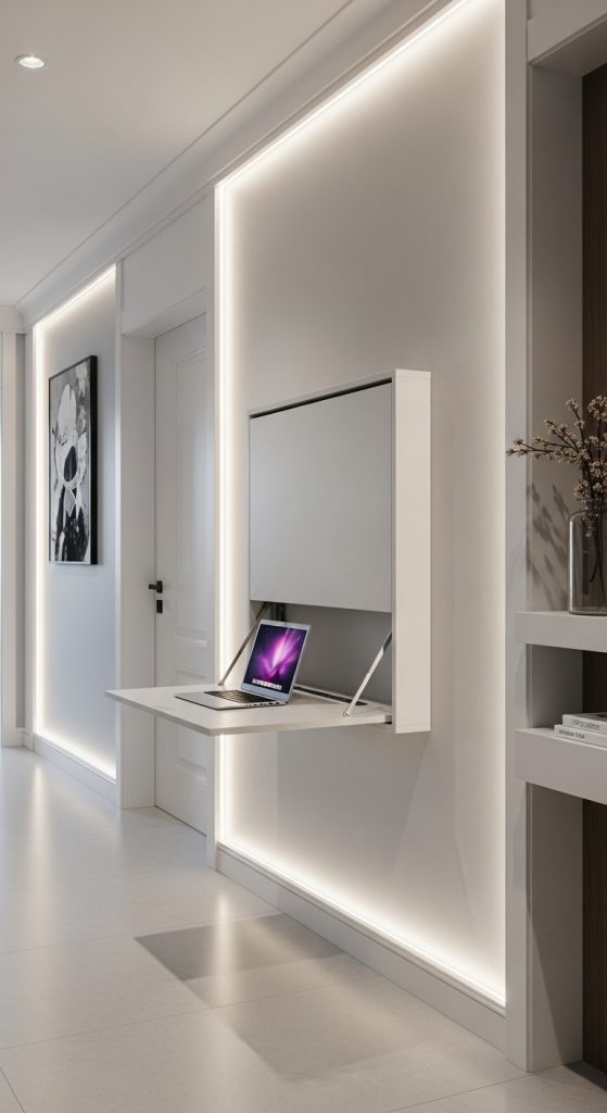 The concept is simple but powerful: convert unused hallway space into a compact workstation that blends seamlessly with your home design. With the right planning, even a narrow corridor can become a productive zone for studying, working from home, writing, or managing daily tasks.