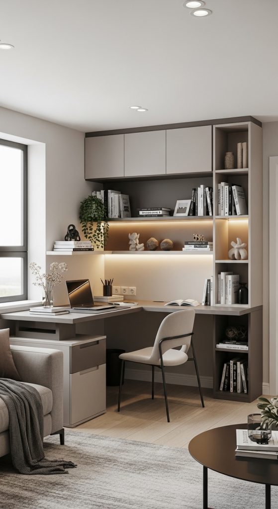 A study nook in the living room is one of the smartest modern home design solutions, especially for people who live in small apartments or shared spaces. Instead of dedicating an entire room as an office, you can create a compact and functional study corner inside your living room without compromising style or comfort. This approach not only saves space but also keeps your home efficient, organized, and visually appealing.