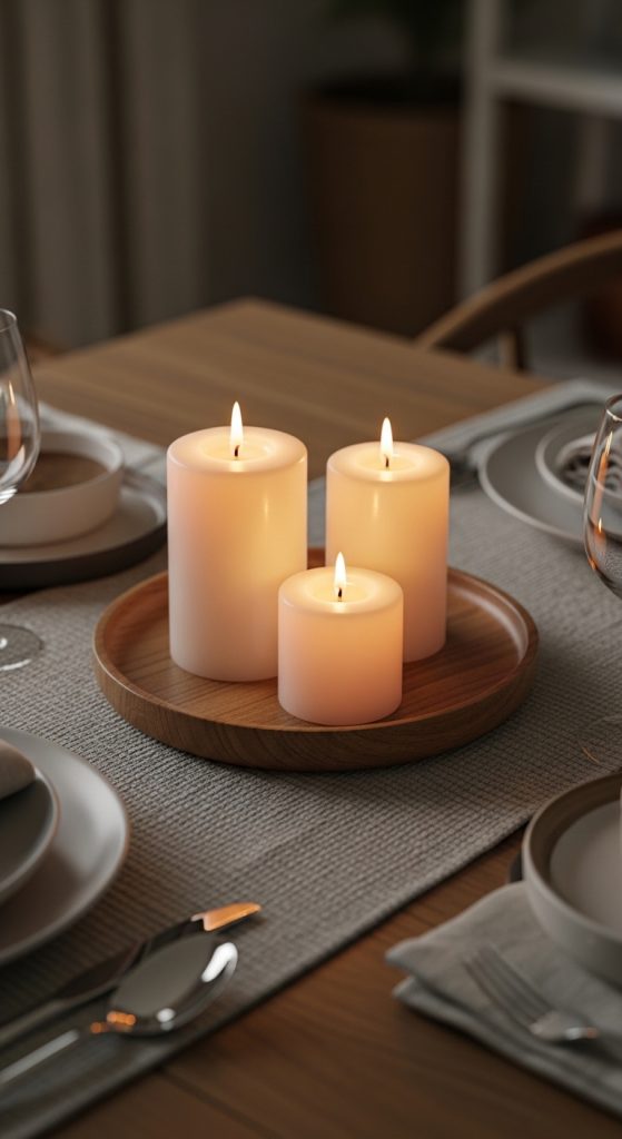 Lighting can also play an important role in everyday centerpieces. Candles or small LED lights create a cozy atmosphere, especially in the evening. Soft lighting combined with natural decor elements can make your dining area feel calm and inviting.