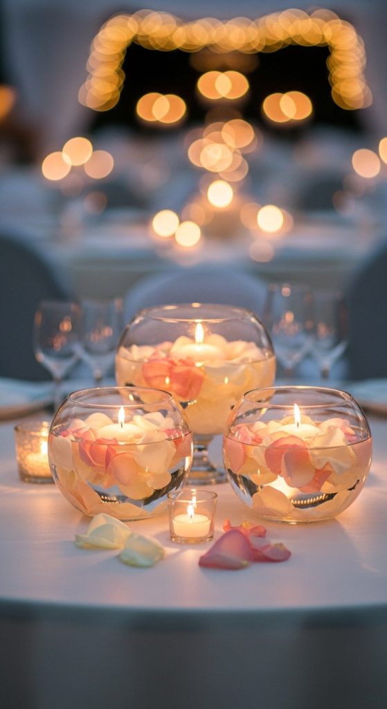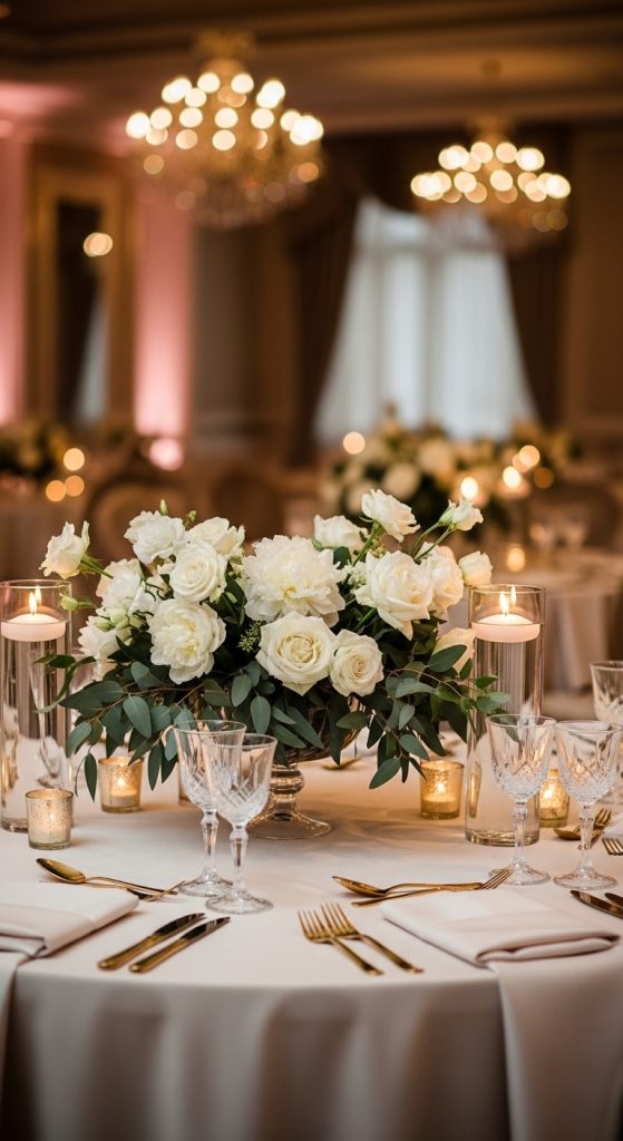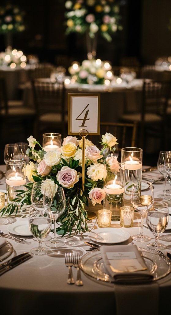 Floral centerpieces are one of the most classic and elegant wedding table decorations. Fresh flowers bring color, fragrance, and natural beauty to reception tables. Depending on the wedding theme, floral centerpieces can be simple arrangements or larger bouquets that become the focal point of the table.