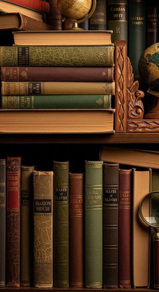 Vintage books are the foundation of any classic bookshelf. Books with worn spines, faded covers, and aged pages instantly create character. Stacking books horizontally instead of lining them all vertically adds visual interest and a relaxed, collected feel.