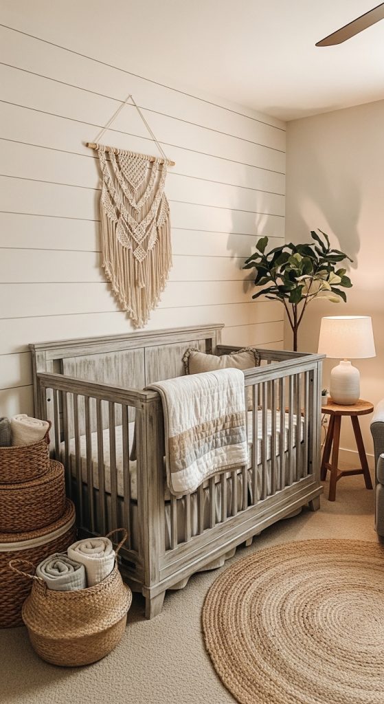 Farmhouse nurseries combine rustic charm with vintage comfort.